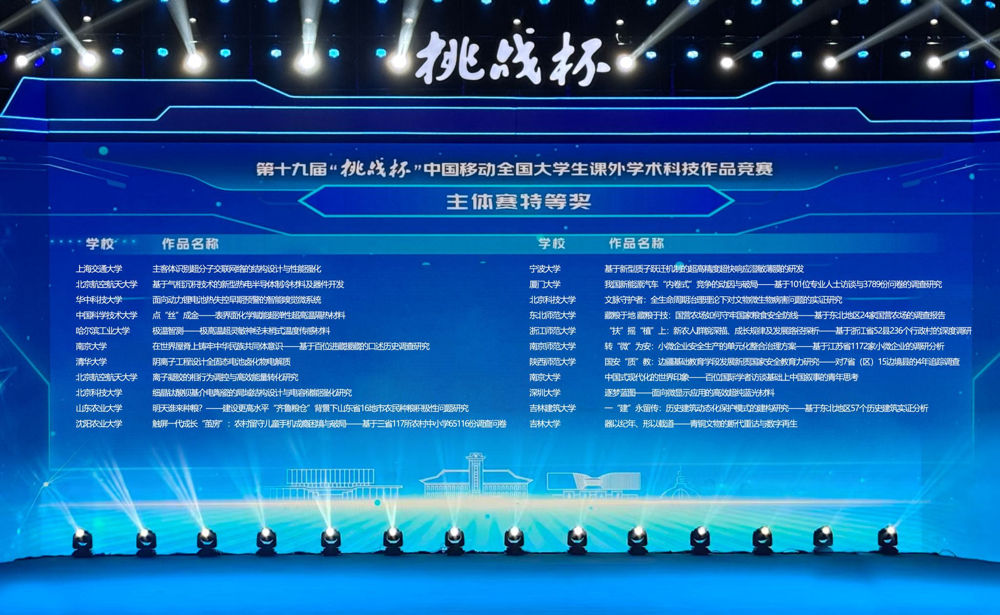 近日,第十九届“挑战杯”全国大学生课外学术科技作品竞赛终审决赛在南京大学落幕。大赛以“青春为中国式现代化挺膺担当”为主题,由共青团中央、中国科协、教育部、中国社科院、中国工程院、全国学联和江苏省人民政府共同主办,由南京大学、共青团江苏省委承办,共吸引来自全国2700多所高校的40余万件作品、300多万名学生参赛。